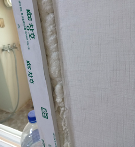 이를 우레탄폼이라고 한다. 우레탄폼은 시간이 지나면서 부풀어 오르면서 굳어지는 성질을 가진 다공질의 물질로 창호의 기밀성을 보완해 준다.. 아무리 작은 유격도 우레탄폼을 꼼꼼하게 충진 하지 않으면 결로를 비롯한 기밀성에 문제가 생길 수 있으므로 반드시 확인해야 한다.