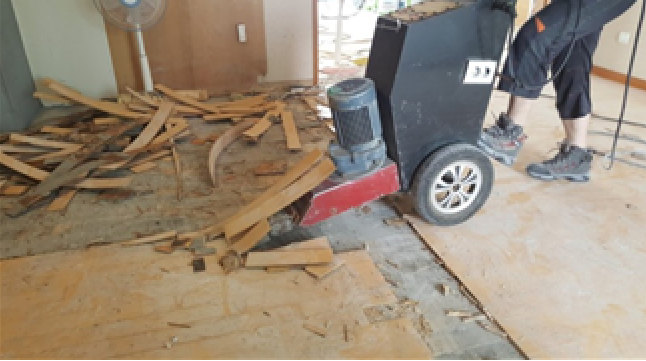일반적으로 기존에 마루시공이 되어있는 곳은 새로운 바닥재를 깔기 위해 마루를 철거하는 공정이 필요하다.